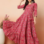 Ankle Length Flared 3/4 Sleeves V Kurta