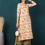Rayon Calf Length Printed Straight 3/4 Sleeves Round Neck Kurta
