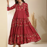 Cotton Calf Length Printed 3/4 Sleeve V-Neck Anarkali Kurta