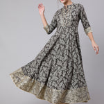 Cotton Printed Ankle Length Anarkali 3/4 Sleeve Mandarin Neck Kurta