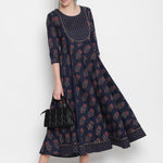 Cotton Printed Round Neck 3/4 Sleeve Flared Ankle Length Ethnic Kurta