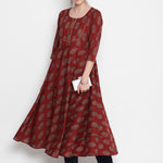 Cotton Printed Round Neck 3/4 Sleeve Flared Ankle Length Ethnic Kurta