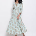 Cotton Printed Round Neck 3/4 Sleeve Flared Ankle Length Ethnic Kurta