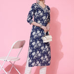 Cotton Calf Printed Straight 3/4 Sleeve V-neck Kurta