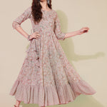 Cotton Printed Calf Length Flared 3/4 Sleeve Round Kurta