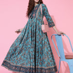 Cotton Printed Ankle Length Flared 3/4 Sleeve Collar Kurta