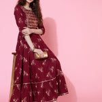 Rayon Printed Ankle Length Flared 3/4 Sleeve Round Kurta