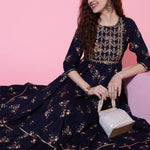 Rayon Printed Ankle Length Flared 3/4 Sleeve Round Kurta