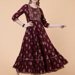 Rayon Ankle Length Printed Flared 3/4 Sleeves Round Neck Kurta