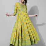 Rayon Ankle Length Printed Flared 3/4 Sleeves Round Neck Kurta