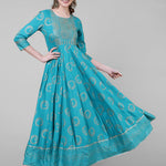 Rayon Ankle Length Printed Flared 3/4 Sleeves Round Neck Kurta