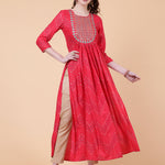 Rayon Calf Length Printed Semi-Flared 3/4 Sleeves Round Neck Kurta