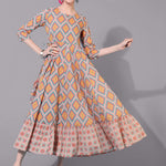 Cotton Calf Printed Flared 3/4 sleeves Round Neck Kurta