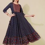 Cotton Ankle Length Printed Flared 3/4 sleeves Round Neck Kurta