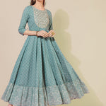 Cotton Ankle Length Printed Flared 3/4 sleeves Round Neck Kurta