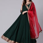 Rayon Slub Full Length Solid Flared 3/4 Sleeve V Neck Kurta Dupatta