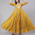 Cotton Ankle Length Printed Flared 3/4 Sleeve Round Neck Kurta