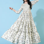 Rayon Ankle Length Flared 3/4 Sleeve Printed Round Neck Kurta