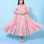 Cotton Calf Printed Flared 3/4 Sleeve Round Kurta