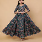 Cotton Ankle Printed Flared 3/4 Sleeve Sweetheart Kurta