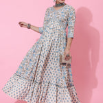 Cotton Ankle Printed Flared 3/4 Sleeve V Kurta