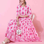 Rayon Calf Length Printed Flared 3/4 sleeves Round Kurta