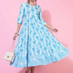 Rayon Calf Length Printed Flared 3/4 sleeves Round Kurta
