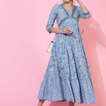 Cotton Ankle Length Printed Flared 3/4 sleeves V neck Kurta