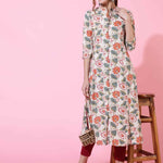 Cotton Flex Calf Length Printed Straight 3/4 sleeves Shirt Collar Kurta