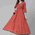 Cotton Ankle Length Printed Flared 3/4 Sleeve V Neck Angrakha