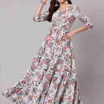 Cotton Full Length Printed Flared 3/4 Sleeve V Neck Neck Kurta