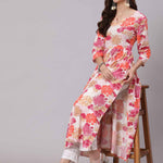 Rayon Calf Length Printed Semi Flared 3/4 Sleeve Round Neck Kurta