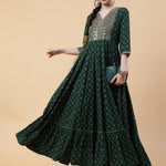 Rayon Full Length Printed Flared 3/4 Sleeve V-Neck Kurta