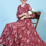 Rayon Ankle Length Printed Flared 3/4 Sleeve Round Kurta
