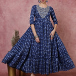 Rayon Ankle Length Printed Flared 3/4 Sleeves Round Kurta