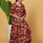Rayon Calf Length Printed Flared 3/4 Sleeves Round Kurta