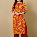 Cotton Calf Length Straight 3/4 Sleeves Round Kurta