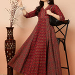 Cotton Ankle Length Flared 3/4 Sleeves V Kurta