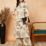 Cotton Flex Calf Length Printed Straight 3/4 Sleeves Mandarin Kurta