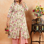 Cotton Flex Calf Length Printed A-Line 3/4 Sleeves Round Kurta