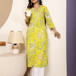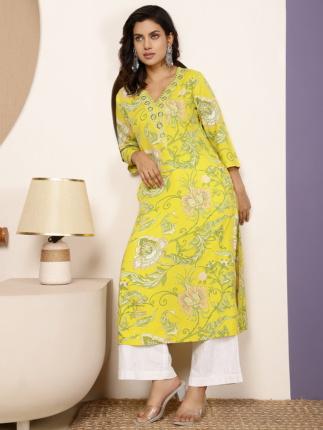 Rayon Calf Length Printed Straight 3/4 Sleeves V Neck Kurta