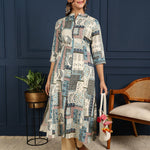 Flex Calf Length Printed A-Line 3/4 Sleeves Mandarin Coller Kurta