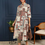 Flex Calf Length Printed A-Line 3/4 Sleeves Mandarin Coller Kurta