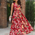 Cotton Ankle Length Printed Flared Sleeveless Sleeves V-Neck Kurta