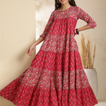 Cotton Ankle Length Printed Three-Quarter Sleeves Key Hole Neck Flared Kurta