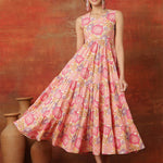Cotton Calf Length Solid Sweetheart Neck Flared Kurta