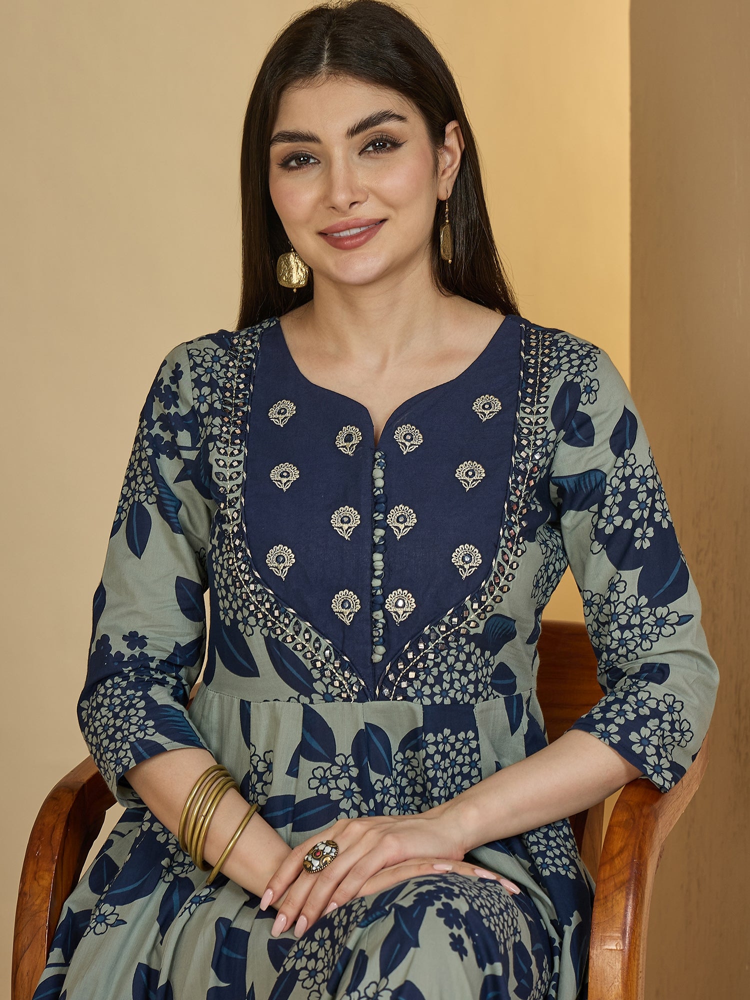 Cotton Ankle Length Printed 3/4 Sleeves Sweetheart Neck Anarkali Kurta