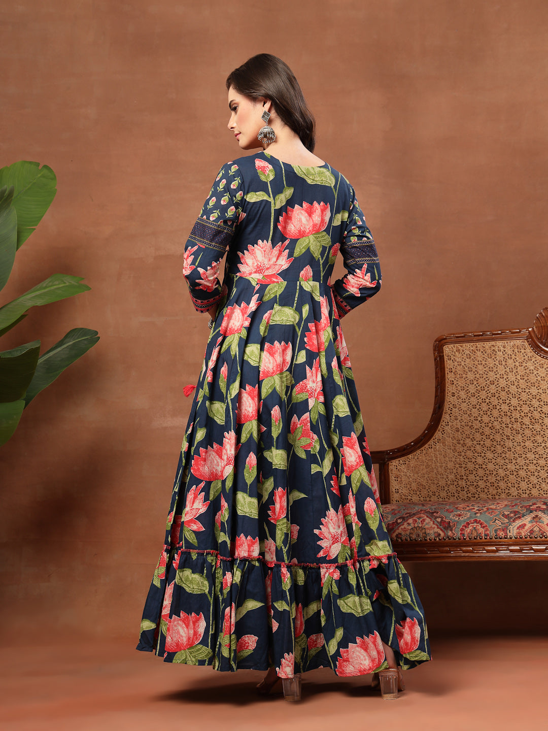 Flared Printed Cotton V-Neck Dress