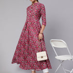 Cotton Printed Mandarin Neck 3/4 Sleeve Flared Kurta