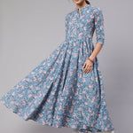 Cotton Printed Mandarin Neck 3/4 Sleeve Flared Kurta
